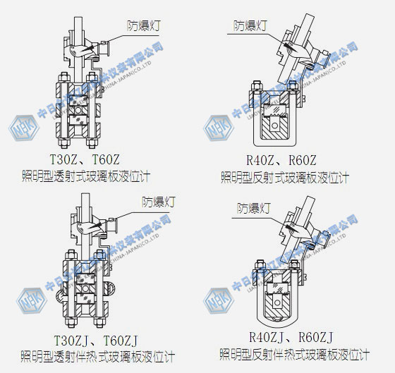 ●T(N)30ZJ、T(N)60ZJ照明型透射伴熱式(雙色)玻璃板液位計(jì)