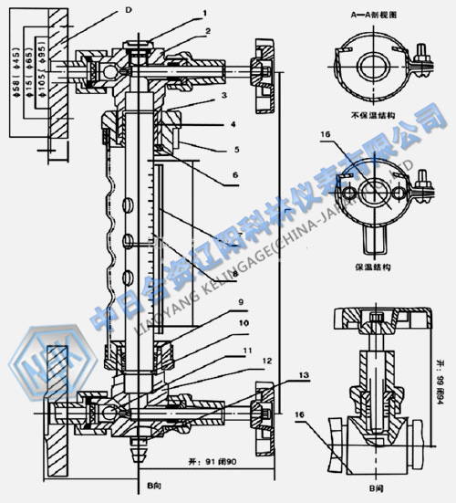 在液位計(jì)的下閥同時(shí)沒有排污結(jié)構(gòu),可供液體取樣,或在檢修時(shí)放出玻璃管中剩余液體以及清洗內(nèi)部之用。