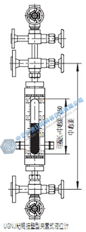 UGN系列粘稠掛壁型石英玻璃管液位計是在UGKJ寬液室型伴熱式液位計的基礎上增加沖洗裝置制成.液位計法蘭與容器上的法蘭連接構成連通器,利用連通器原理,透過石英管可以直接觀測各種容器內介質的液位.在氣相,自然光直接透過石英管從可視窗射出,在液相,自然光直接透過石英管照射到不透明的有色介質上被吸收而呈現(xiàn)出介質的本色,這樣氣、液的分界面就清晰可辨了。