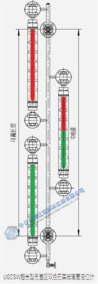 ●UGLS超長型雙色石英玻璃管液位計(jì)適用于測量中心距超過2500mm以上、無色透明液體或顏色較淺液體的液位。