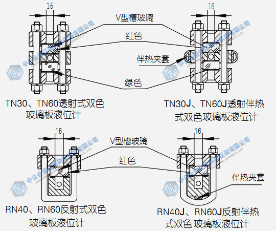 ●TN30、TN60透射式雙色玻璃板液位計